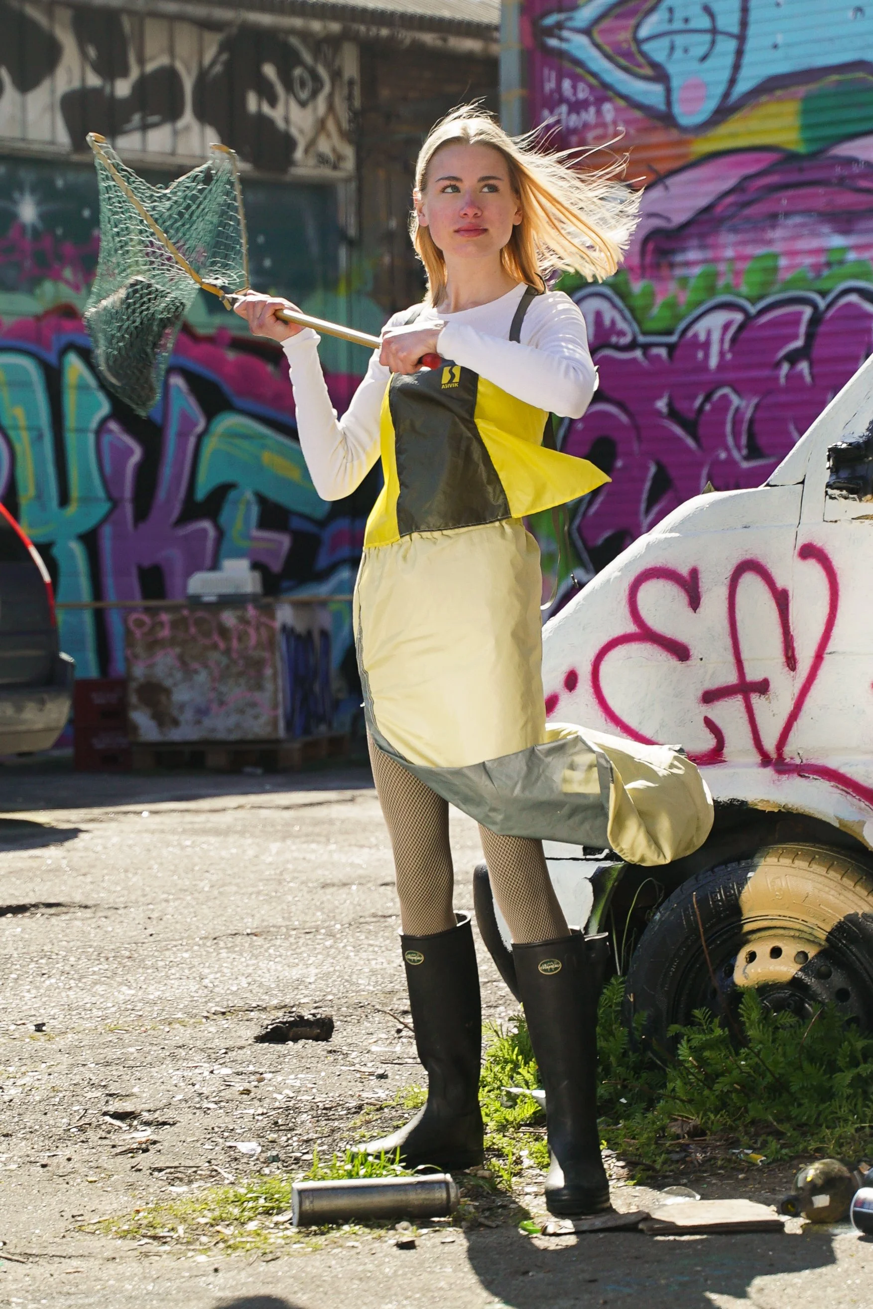 Helenes look er perfekt til den moderigtige fisker. Fang aftensmaden med stil, med et upcyclet vandvast sæt.