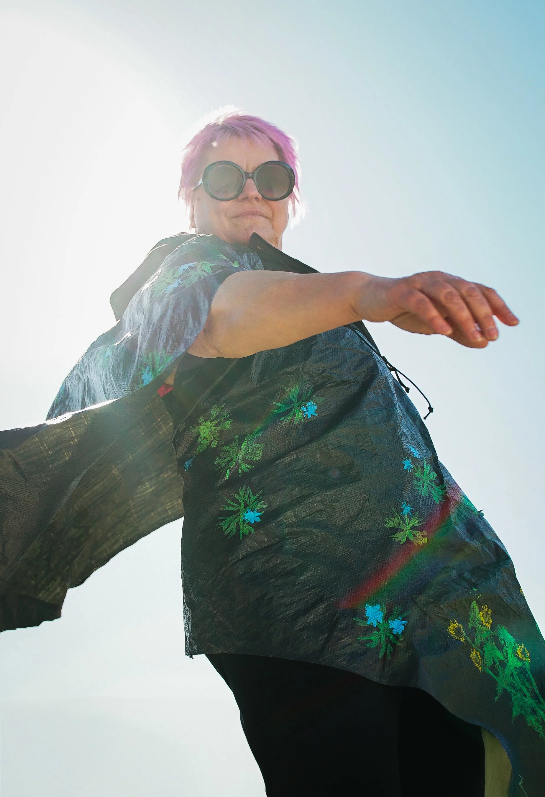 Anneli mener, at alle materialer er high fashion, uanset hvor de kommer fra. Hvis du har materialer, har du kunst, skønhed og magt. Og dette er inspirationen bag hendes outfit.