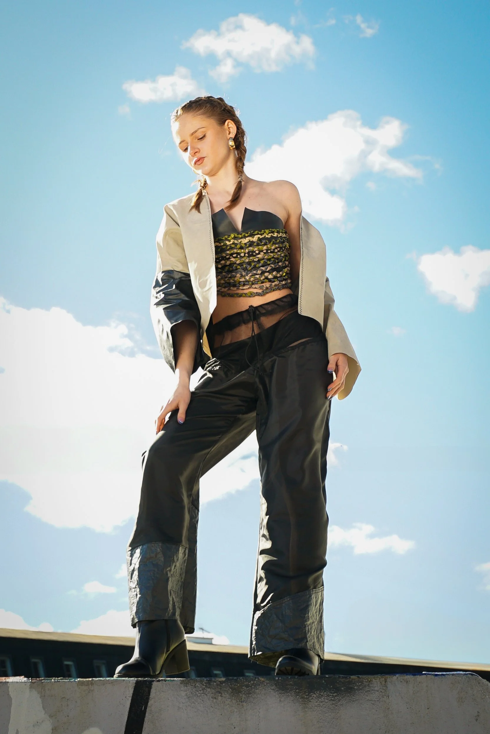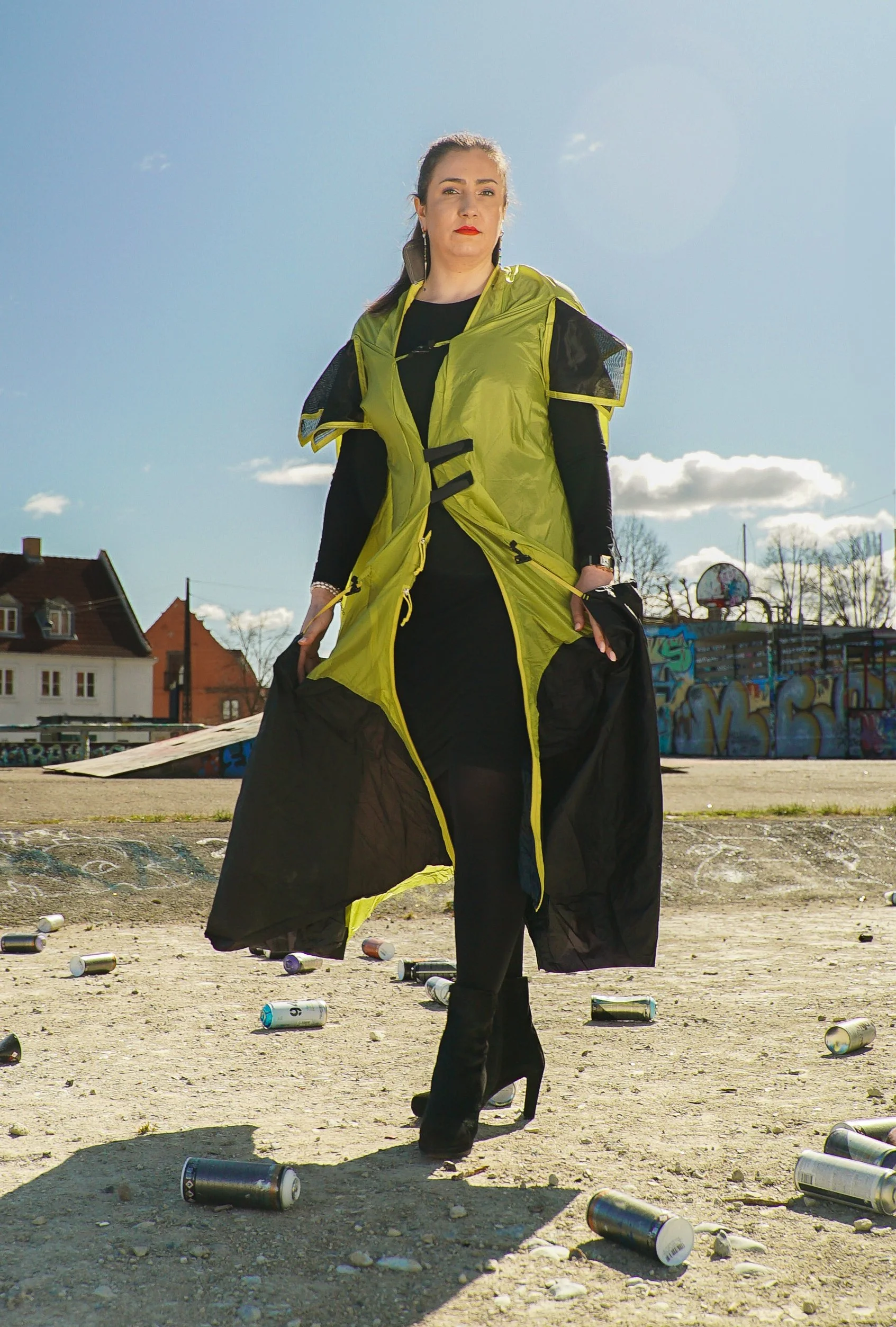 Outdoor tøj for Laura udstråler selvtillid og troen på sig selv. Naturens vildskab inspirerede hende til at skabe et utraditionelt piece.