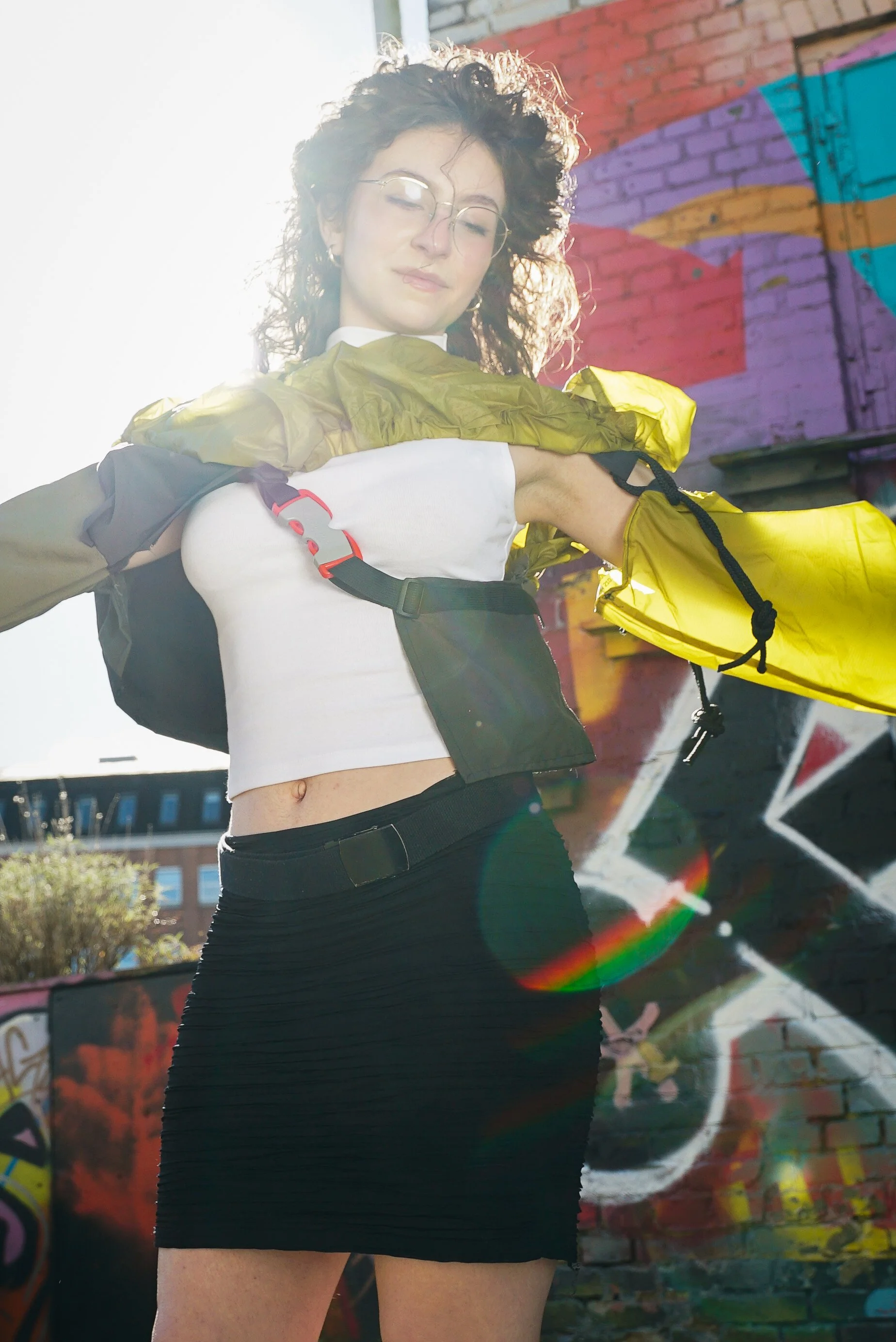 Ida-Maries idé var at lave et street inspireret outfit, som stadig er nogenlunde praktisk. Hun tænkte fx., at det ville være godt at have på på en festival en dag, hvor det regner, da teltstoffet gør at det er vandtæt.